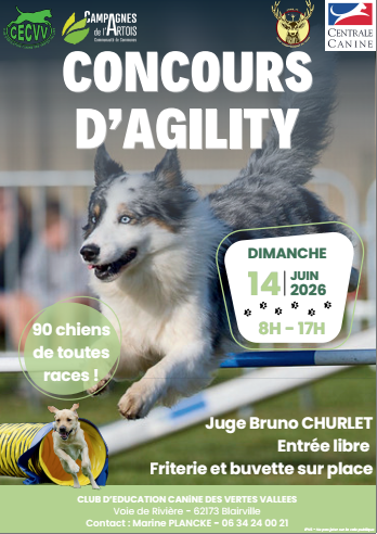 Concours d’Agility au club canin le dimanche 14 juin 2026